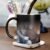 - Black ceramic mug with a 325 mL capacity that changes color with heat.